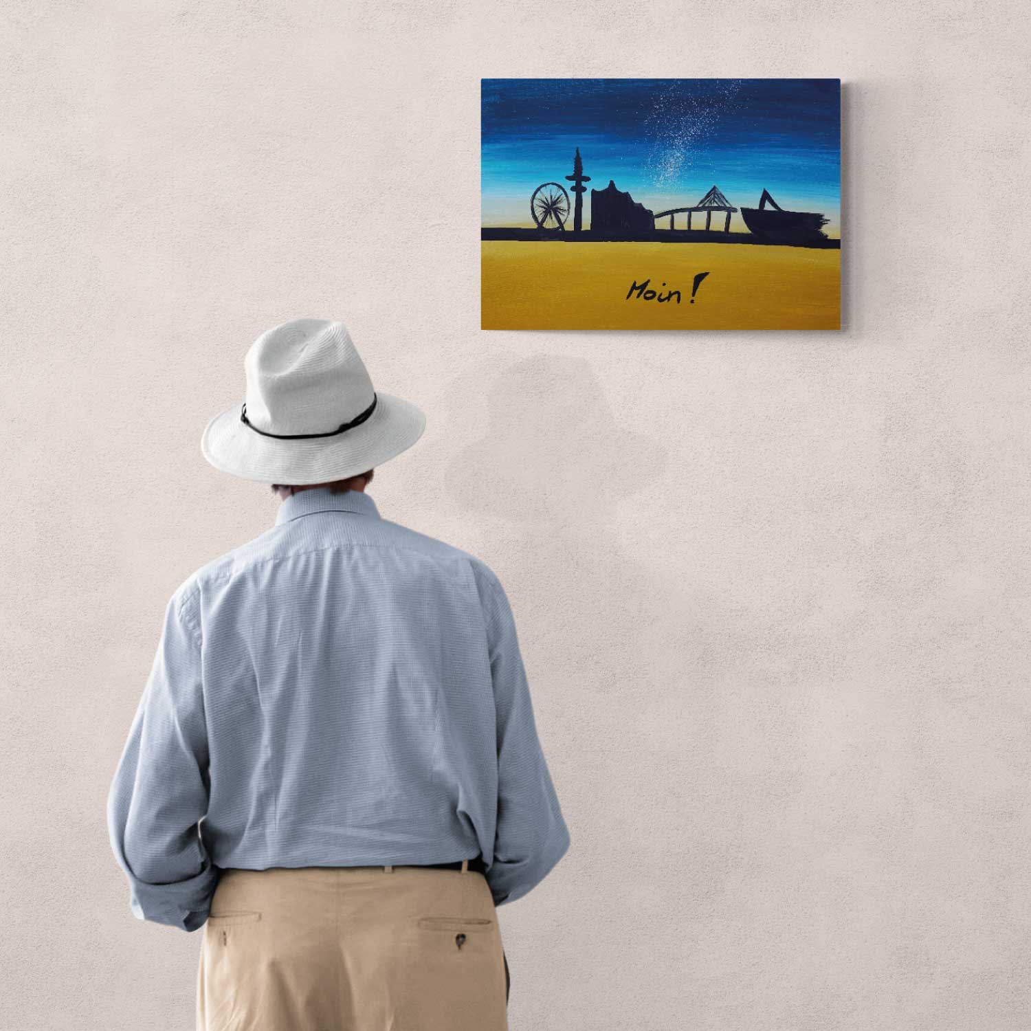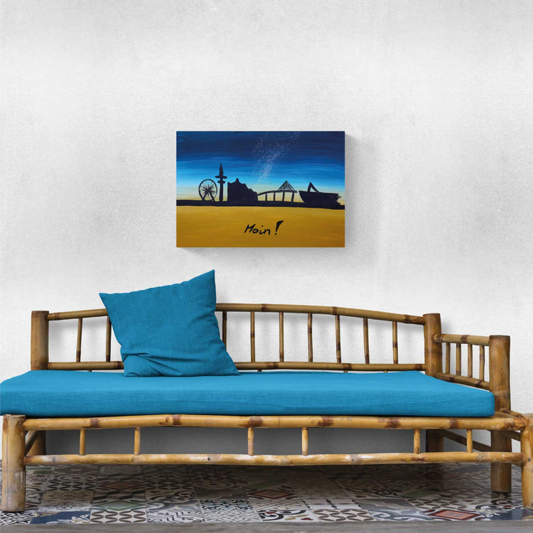 A wonderful colorful painting that can be used as wall decoration. Hello from Hamburg! Perfect gift for seafarers, or living in Hamburg or any other city in Northern Germany. It can be a great housewarming gift! The paintings are acrylic on canvas and are made to the highest quality by professional artists just for your home or office! These unique works of art are one of a kind!
