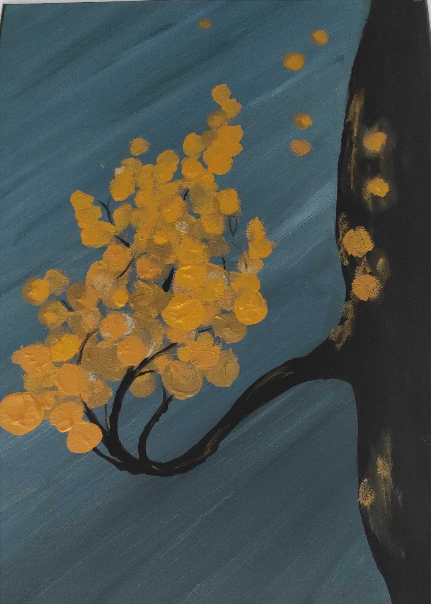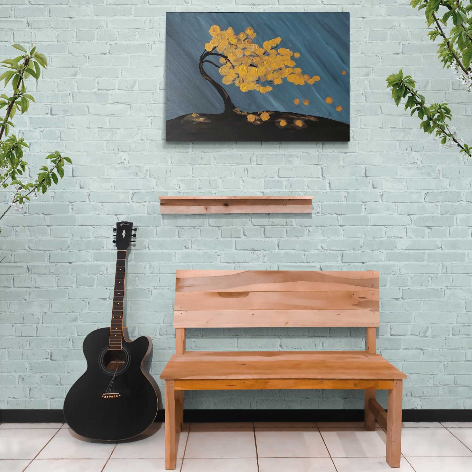 Hand-painted mural - acrylic painting golden tree 70x50x2cm