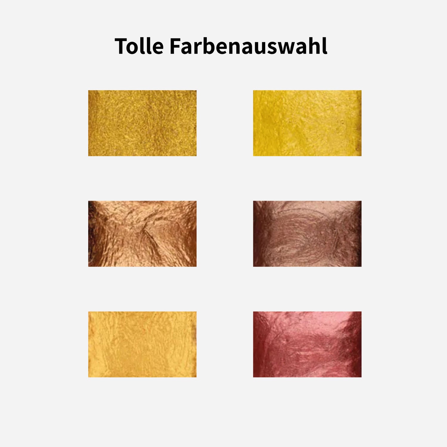 Aquarellset mit 6 Metallicfarben: Mit dem Aquarell-Metallic-Set sind Ihrer Fantasie und Ihrem Talent nur Grenzen gesetzt. Dieses Set besteht aus 6 Metallic-Farben, die Ihren Bildern einen kräftigen, lebendigen Effekt verleihen.