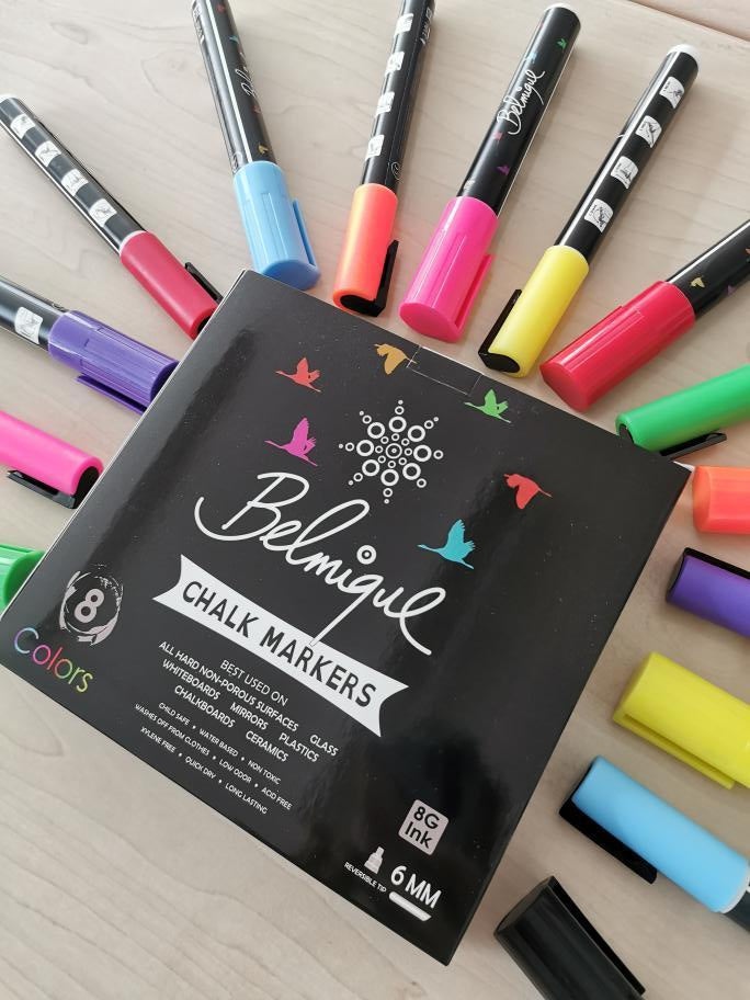 „Ich liebe die Kreidemarker von Belmique. Sie haben super kräftige Farben und sind leicht abwischbar!!“